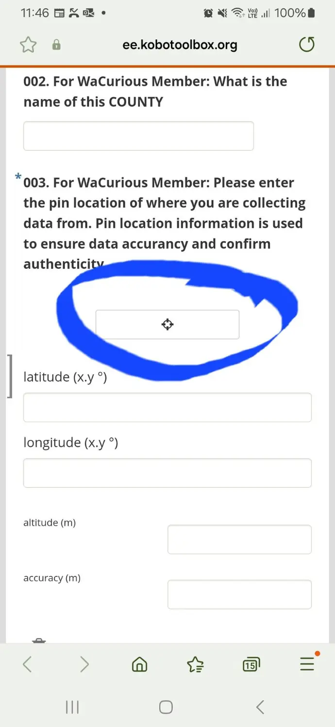 Navigate to the question that needs you to share your pin location